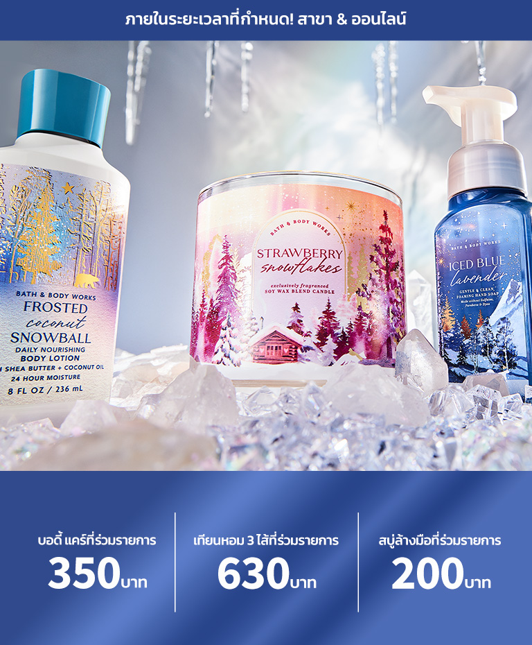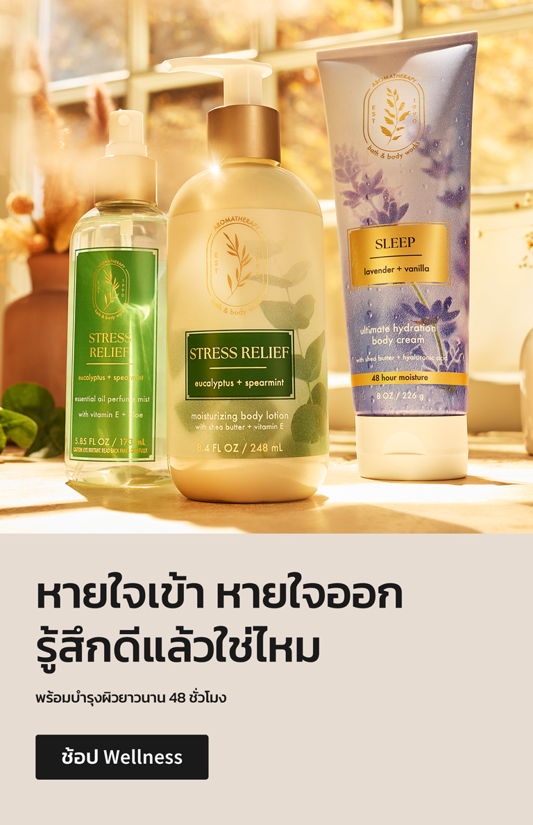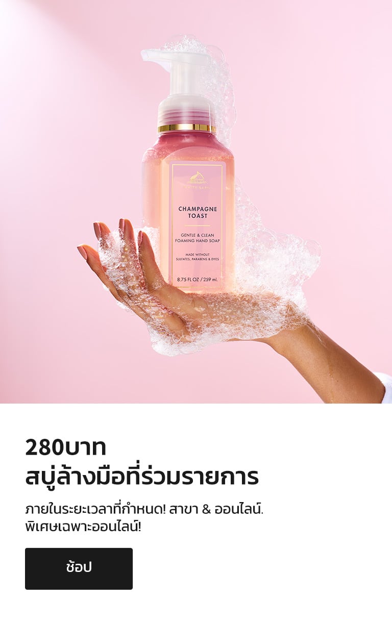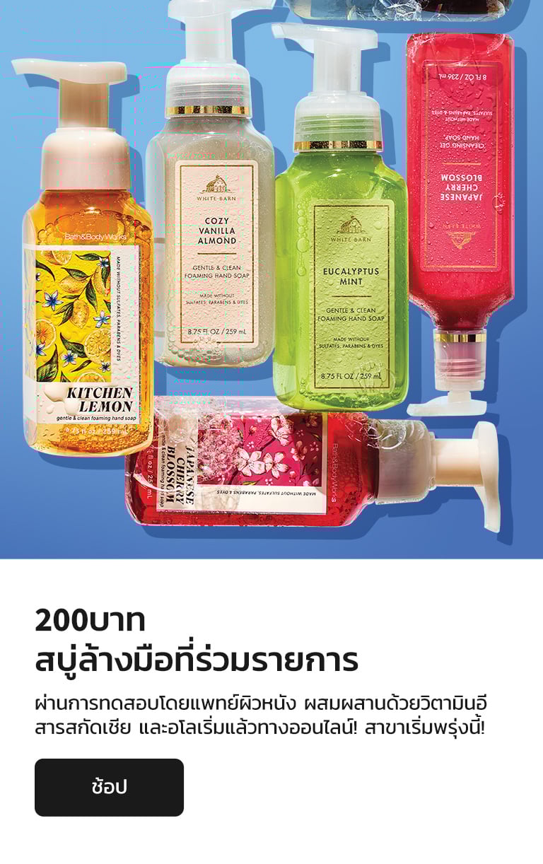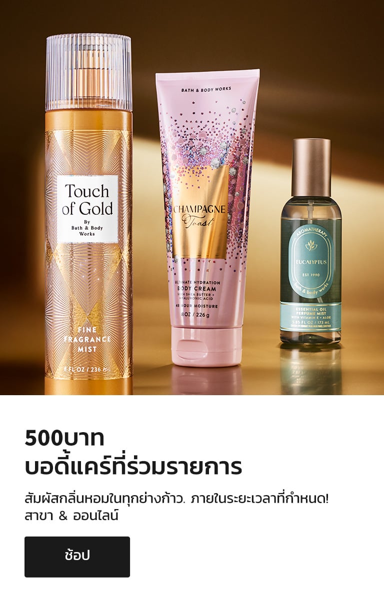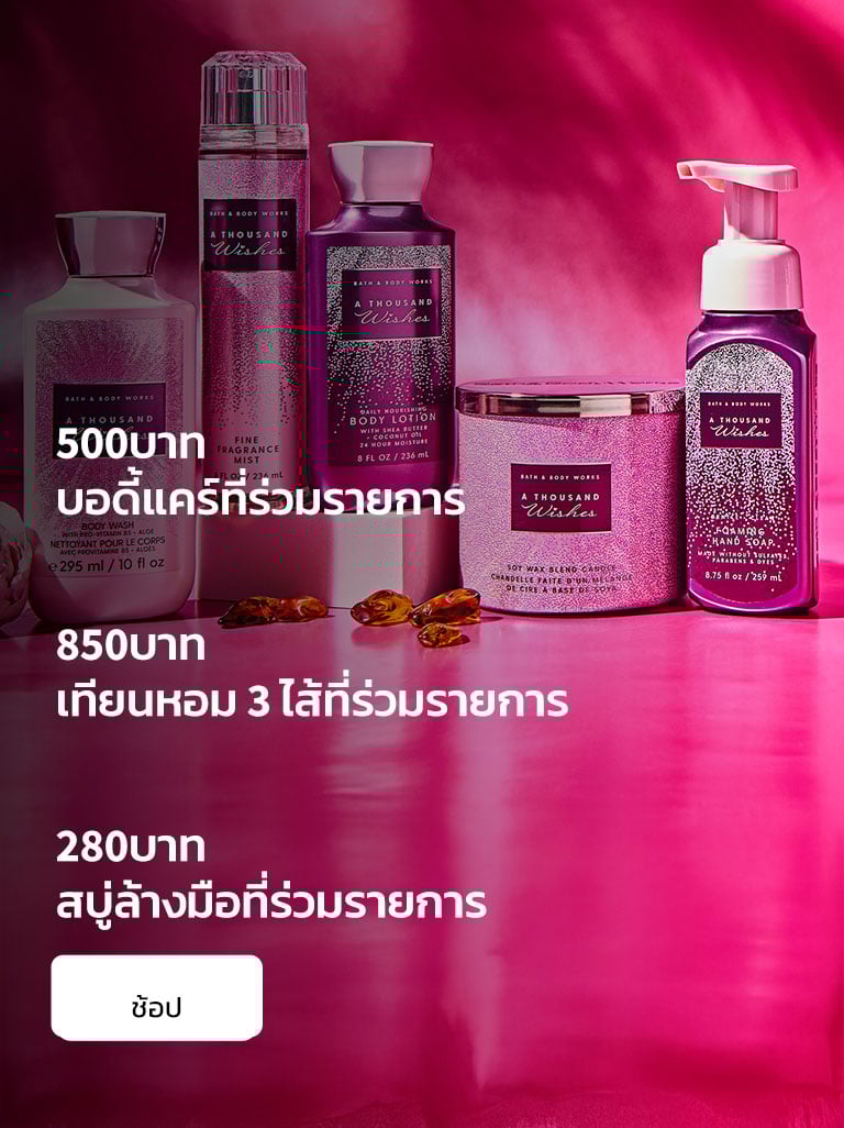 Bath and Body Works คือสถานที่ที่คุณไป ของขวัญ และสารพัดที่สร้างความประหลาดใจและความสุข เราค้นพบตั้งแต่กลิ่นหอมสดชื่นไปจนถึงการดูแลผิวที่ผ่อนคลาย มอบประสบการณ์พิเศษแห่งความทรงจำอันแสนสุขให้กับคุณ โอ้! และในขณะที่คุณกำลังท่องเว็บ ให้เลือกซื้อตัวเลือกใหม่ล่าสุดและยิ่งใหญ่ที่สุดของเรา โลชั่น, สบู่ล้างมือ และ เทียน!