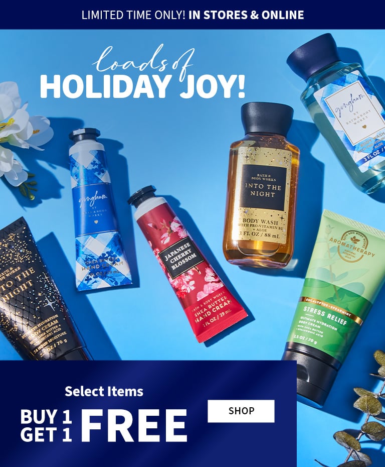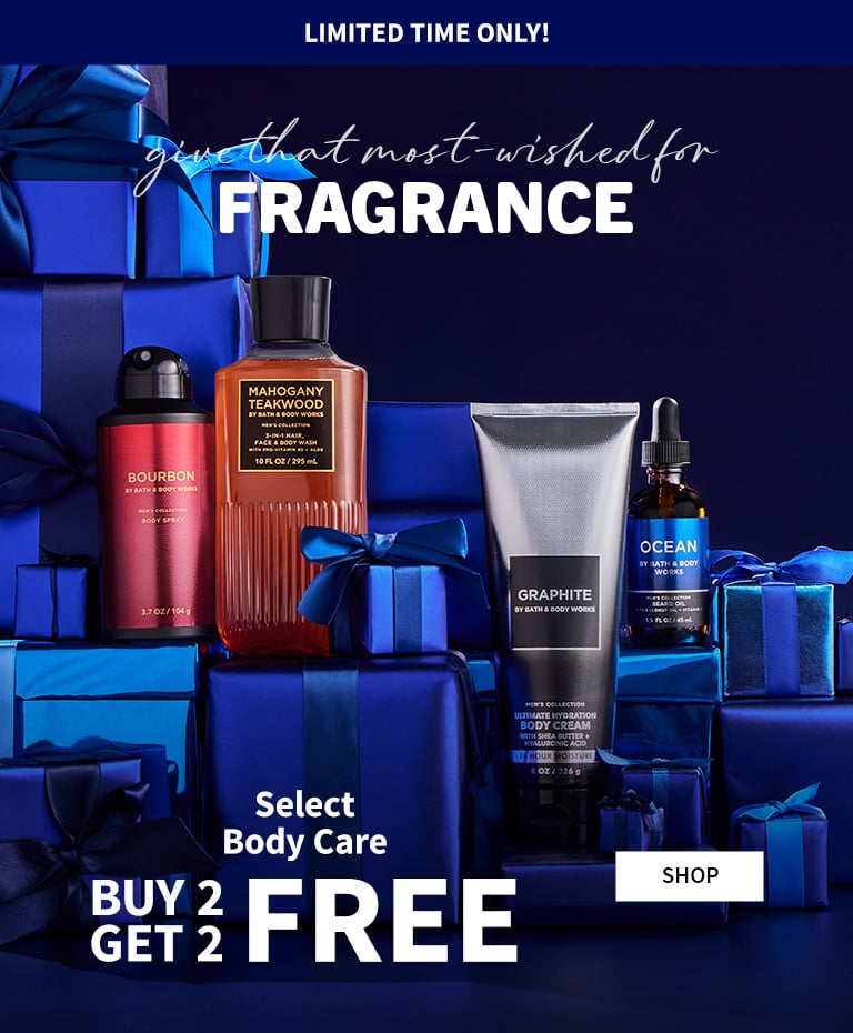 Bath and Body Works is your go-to place for gifts & goodies that surprise & delight. From fresh fragrances to soothing skin care, we make finding your perfect something special a happy-memory-making experience. Oh! And while you're browsing, shop our latest & greatest selection of lotions, soaps and candles!